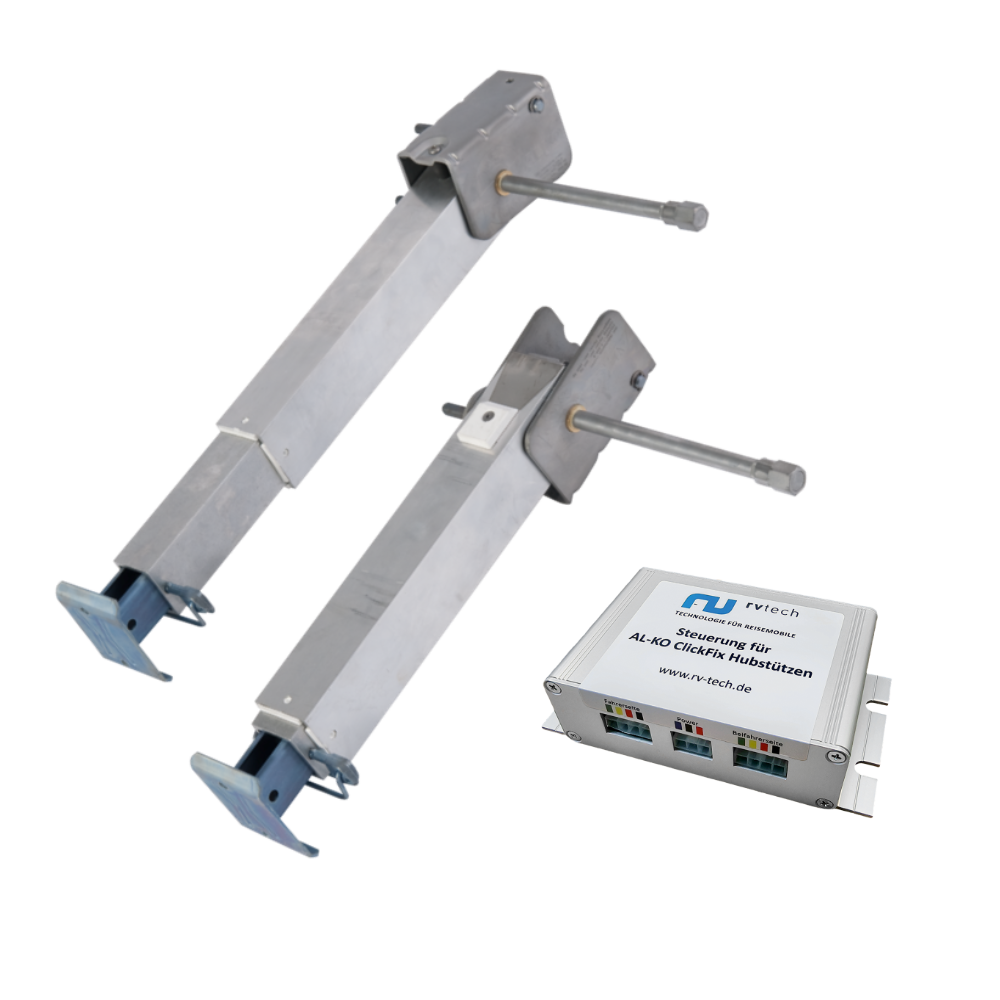 Mit dem elektrischen Heckstützenantrieb von RV tech steuern Sie Ihr Wohnmobil bequem per App. Ein Klick genügt, um die Heckstützen auszufahren und das Fahrzeug stabil aufzustellen.